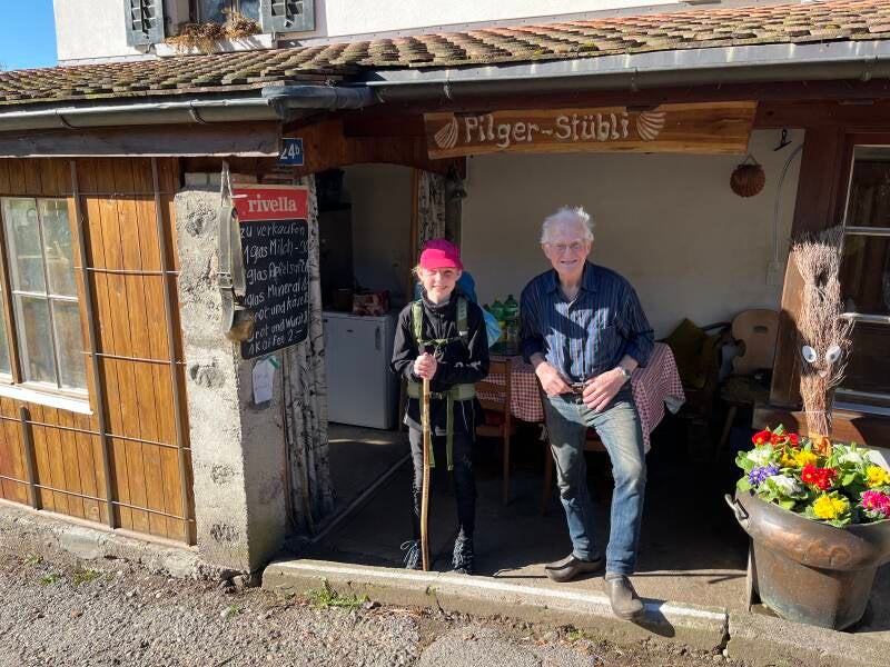 Nach ca. 45 Minuten haben wir einen coolen Pilgerstopp passiert und kurz mit dem Inhaber gesprochen, der voller Leidenschaft dabei war. Leider war das für uns zu früh für einen längeren Stopp.