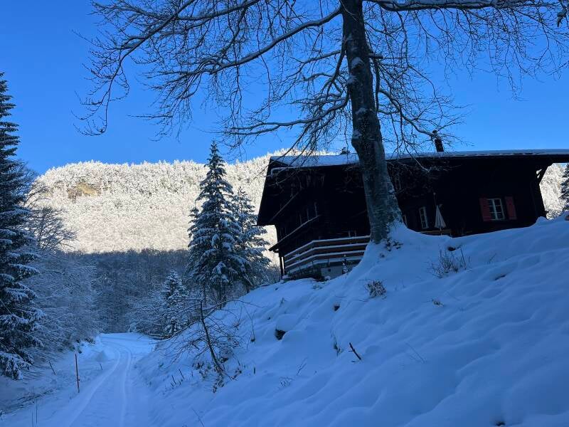 In Brienzerwil fiel direkt auf, dass sich die Bauweise der Häuser merklich verändert hat - Einheitllich: Unten weiß, oben Holz in dunkelbraun. Mal schauen, ob das im Berner Oberland typisch ist.