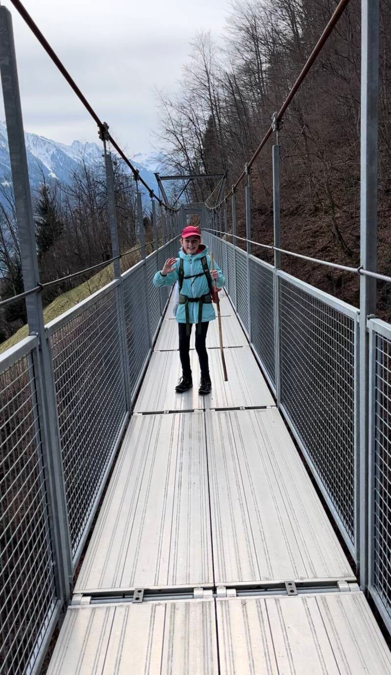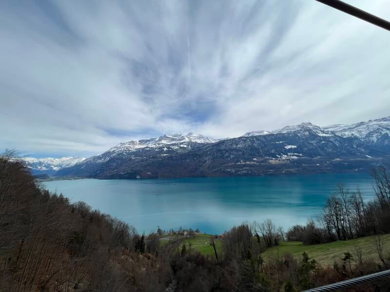 Der längere und beschwerlichere Abstieg sorgte aber dafür, dass wir erst nach dem Mittag in Brienz eintrafen und noch mehr als die Hälfte des Weges zurückzulegen hatten. Und auch das Streckenprofil (inkl. spektakulärer Hängebrücke in Eblingen) hatte es in sich: Es ging rege auf und ab und so waren wir am Abend in Ringgenberg ziemlich platt. Aber das immer wieder großartige See-Berge-Panorama und die Gedanken an den Morgen im Schnee zauberten uns auch später am Tag noch ein Lächeln ins Gesicht.
