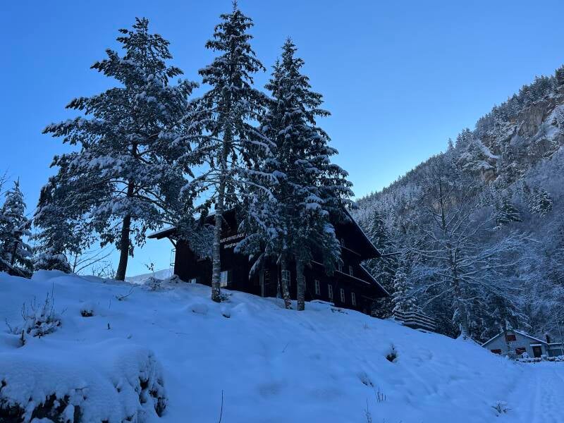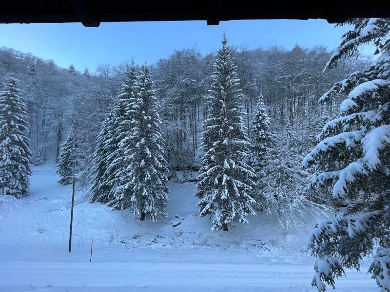 Nachdem es bis tief in die Nacht weitergeschneit hatte, sind wir am Morgen in einem echten Winterwonderland wachgeworden. Unsere Spuren vom Vorabend waren nicht mehr zu sehen und die Schneedecke war auf rund 20cm angewachsen. Ein wahrliches Winterparadies im Frühling: