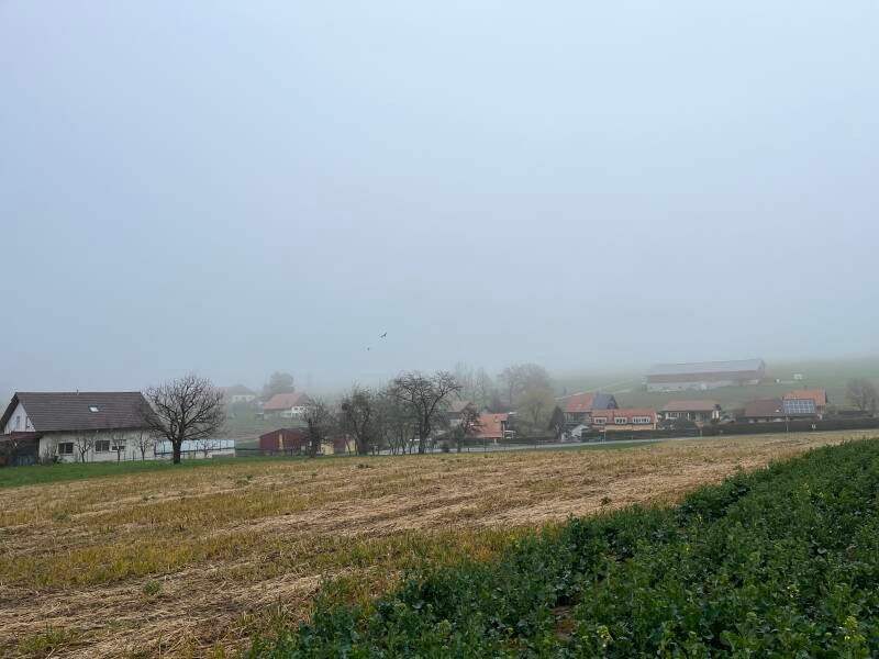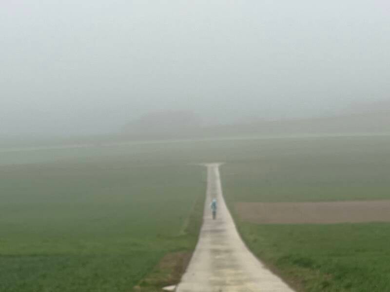 Gestärkt durch ein typisches Schweizer Frühstück mit Brot, Käse, Marmelade und Müsli bei Familie Stern sind wir auch wieder zeitig gestartet und das Wetter hatte dann doch noch eine Überraschung parat. Nach Sonne, Regen, Schnee und Wind, was fehlt noch? Richtig - Nebel! Wir sind also die ersten 1, 2 Stunden durch einen recht nebligen Morgen gelaufen. Gut, es war mehr Hochnebel als Nebel, also Sichtweiten so 500m oder so, aber immerhin. ;-)