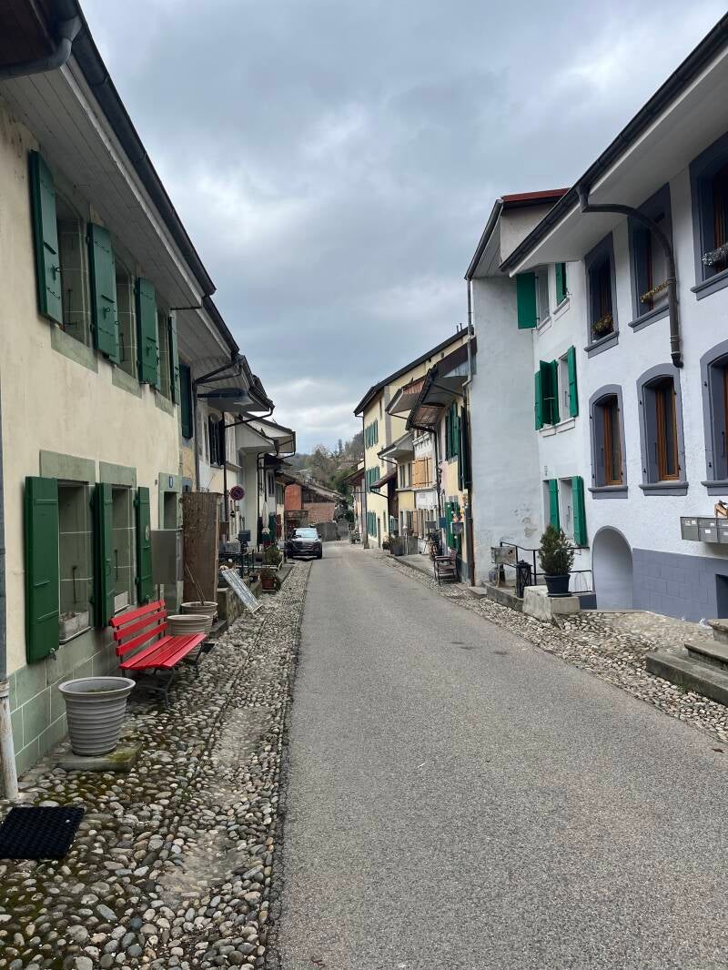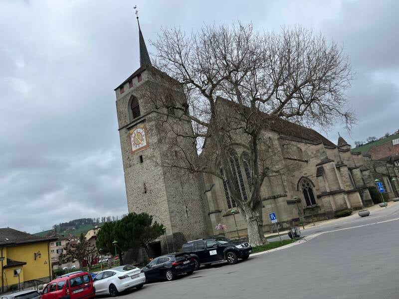 Die Strecke führte uns aus dem mehrheitlich katholischen Freiburg nun ins mehrheitlich protestantische Waadtland (fr: Vaud). Hinunter ging es ins Tal der Broye, deren Verlauf wir in die malerische Stadt Moudon mit mittelalterlicher Ober- und Unterstadt (ähnlich wie in Freiburg) folgten. Hier wärmten wir uns bei einem Kaffee / Kakao samt Canapee zu Mittag etwas auf: